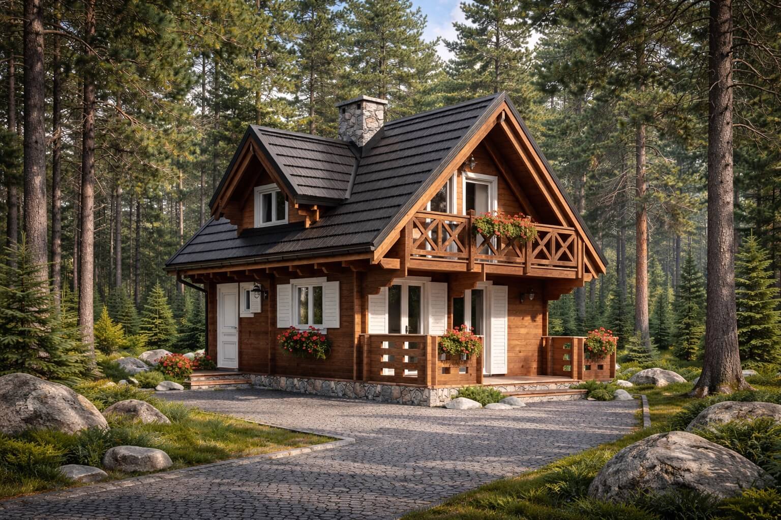 • Masívne 58 mm steny zo sibírskeho smreka: Husté severské drevo s dvojnásobnou trvácnosťou oproti tuzemskému smreku poskytuje výnimočnú stabilitu a odolnosť voči nepriazni počasia.